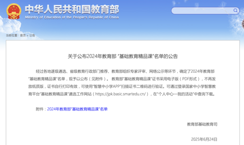 2024年教育部 “基础教育精品课”名单公布,台州27门课程