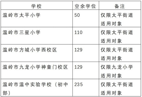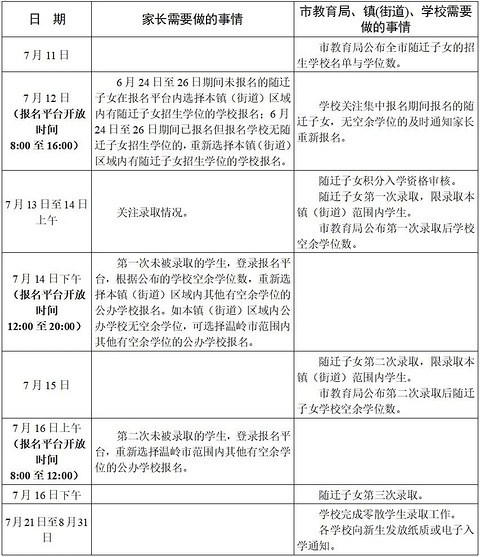 温岭市随迁子女招生入学日程安排及学校学位名单