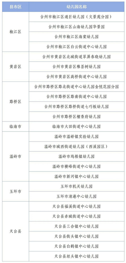 台州25所!2024年浙江省一级幼儿园拟通过名单公示