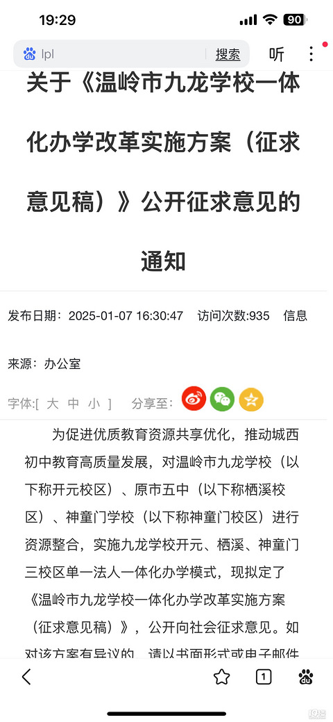 温岭九龙校区,五中,神童门校区合并公开征求意见了