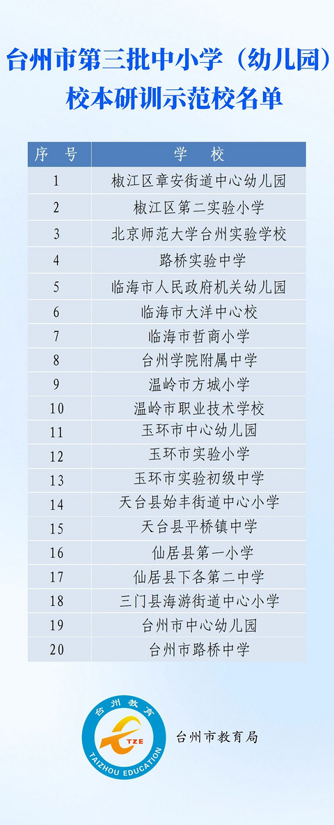 20所!台州市第三批中小学(幼儿园)校本研训示范校名单出炉