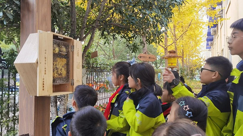蜜蜂入住时间:2023.12.12地点:白云小学 生态连廊心情:激动 好奇人物:探究中华蜂项目化团队 遇 见 蜜 蜂 本次入住校园的蜜蜂是中国独有的中华蜜蜂。该蜂体躯较小,头胸部呈黑色,腹部呈黄黑色,全身披黄褐色绒毛。中华蜜蜂耐寒、耐热、抗螨,嗅觉敏锐,善于采集零星蜜源。它能帮助植物传播花粉,对维护生态环境、保护生物多样性有着重要的作用。不过,目前由于多种原因,中华蜜蜂出现了生存危机。作为