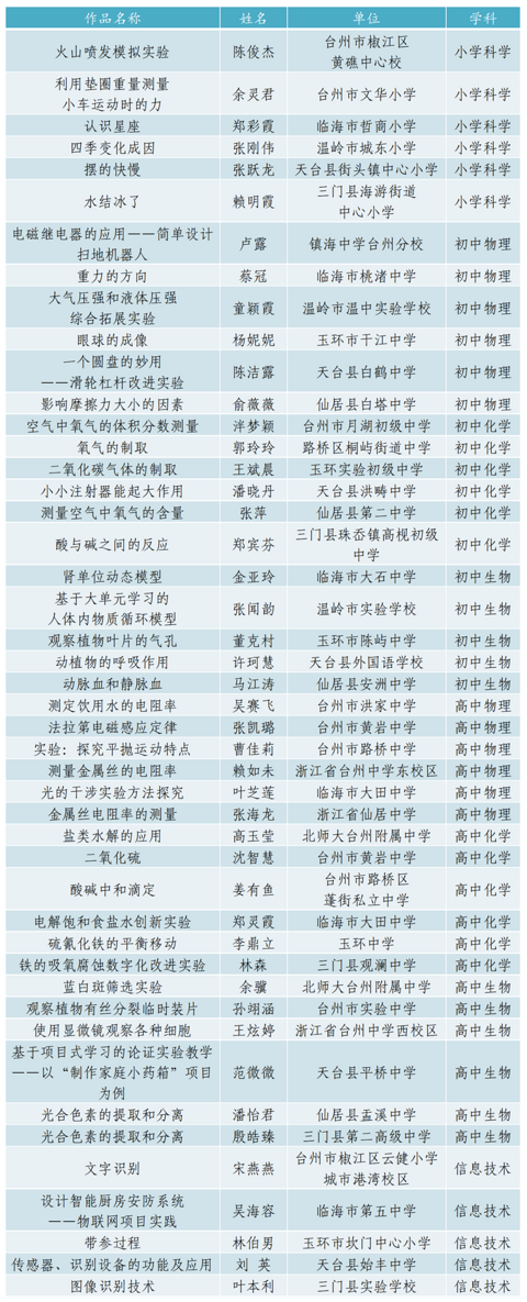 2023年台州市中小学实验教学说课比赛获奖名单出炉