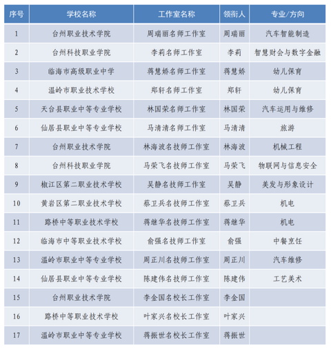 17家!台州市职业院校名师名技师名校长工作室名单公布