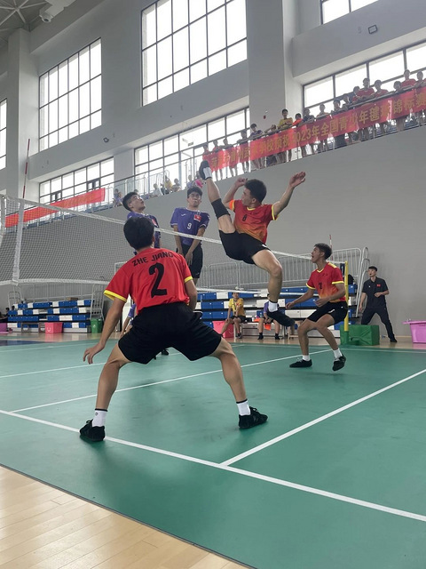 8月13日,2023年全国青少年毽球锦标赛,在山东省菏泽市曹州武校顺利落下帷幕。临海市桃渚中学毽球队在此次比赛上斩获3金2银1铜,创历史佳绩! 据了解,毽球运动是一项新兴的体育项目,它集羽毛球的场地、排球的规则、足球的脚法、踢毽子的技巧于一身,以其熟练、准确、细腻的技巧性,快速多变、激烈反复的对抗性,吸引了众多的观众和参与者。在当今国家推行全民健身运动和教育实施“应试教育”向“素质教育”转轨的热潮