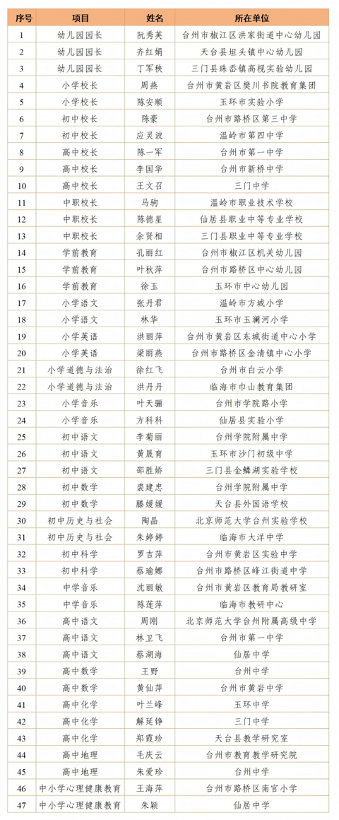 台州47人!2025年浙派名师名校长培养对象名单公布
