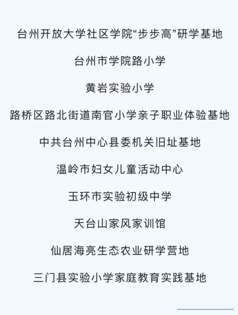 2023年度首批台州市家庭教育实践基地名单公布
