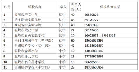 台州市教育局发布2023年台州市民办义务教育学校跨县域补招公