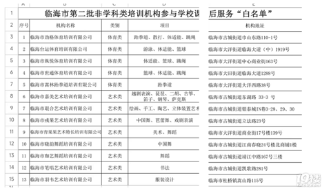 关于公示临海市第二批非学科类培训机构参与学校课后服务“白名单