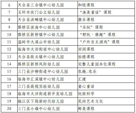近日,台州市教育局公布台州市基于园本课程的幼儿园环境创设评比结果。天台县始丰街道中心幼儿园的《乡野课程》等44个基于园本课程的环境创设项目分别获城区组一、二、三等奖,椒江区章安街道中心幼儿园的《臻美课程》等42个基于园本课程的环境创设项目分别获农村组一、二、三等奖。 都有哪些幼儿园上榜?一起来看获奖名单! 获奖名单 城区组 农村组 来源:台州教育