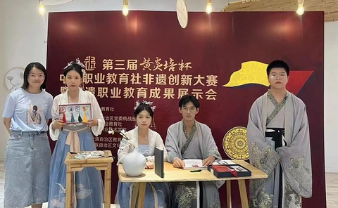 喜报 椒江职业中专 喜获国家级 “非遗教育特色院校” 荣誉称号 (全国仅四所中职学校) 学生团队斩获 第三届“黄炎培杯” 中华职业教育非遗创新大赛 三等奖两项, 优秀作品两项! 教师团队 在非遗教学成果(中职赛道)中 荣获第二名! 第三届“黄炎培杯”中华职业教育社非遗创新大赛暨非遗职业教育成果展示会,由中华职业教育社主办,广西壮族自治区党委统战部、广西中华职业教育社、广西金融职业技术学院联合承办,