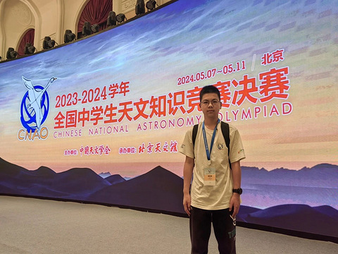 5月11日,2023-2024学年全国中学生天文知识竞赛决赛在北京圆满闭幕。镇海中学台州分校初二学生、天文社社长贺钇涵获低年级组一等奖(全国仅六人,位列第四名),为浙江省唯一,实现了台州市在全国中学生天文知识竞赛中一等奖“零的突破”。 左3为镇海中学台州分校学生贺钇涵 全国中学生天文知识竞赛(Chinese National Astronomy Olympiad,CNAO)是经教育部审批,由中国天