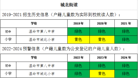 根据《浙江省教育厅关于建立义务教育阶段公办学校户籍生入学信息发布和预警机制的指导意见》要求,市教育局采集了我市五个街道各公办义务教育学校2019-2021年学区内户籍儿童入学数据和2022-2024年学区内户籍儿童信息(户籍数据截至2022年1月),现将各学校2019-2021年招生信息和2022-2024年预警信息公布如下: 预警等级 红色预警,表示学区内适龄户籍儿童人数达到或超过学区学校常态招