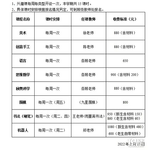 又开学了,幼儿园的兴趣班又来了,上年报的时候就觉得有点贵,如果全部报的话要三四千呢,算算快跟学费差不多了。 虽然比起外面的兴趣班,还是便宜的,但是幼儿园兴趣班很多都是自己幼儿园的老师自己教的,没有特别专业的老师来教,其实要学精还是要在外面上。问问大家都是怎么报的,参考一下!