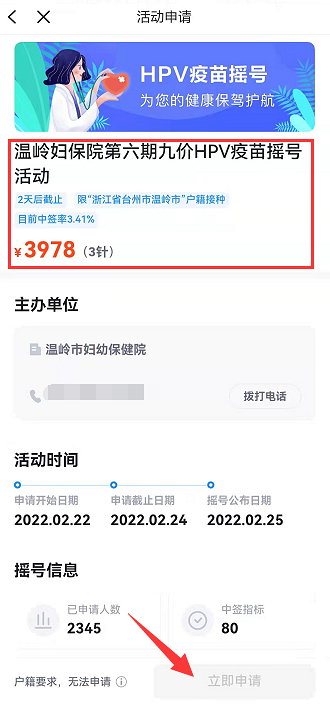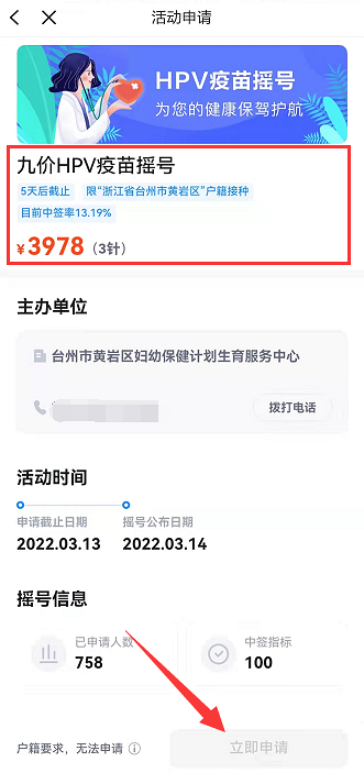 速看!台州这场九价HPV疫苗摇号活动正在申请中!