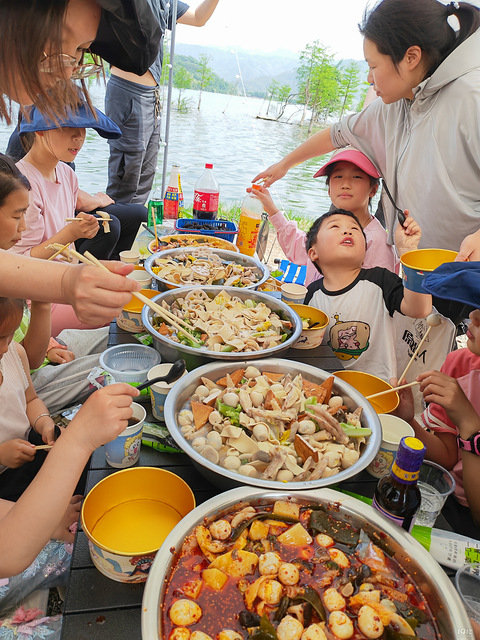我家闺女同学妈妈,在游玩群里提议五一假期出去露营,经过几天讨论,定下5月2号去黄岩上洋乡前岸村湿地公园(白鹭湾湿地)露营。 我们是早上9点椒江出发,自驾1个小时59分钟以后到达目的地,人超级多。有位宝妈很会做美食,2号中午、晚上,3号早上。美食见照片:钵钵鸡:各种口味,2号中餐烧烤:5.2晚上开始一直到5.3中午结束龙虾:2号晚上的土豆饭:3号早餐露营:需要气氛娃:放飞自我早上我和另外