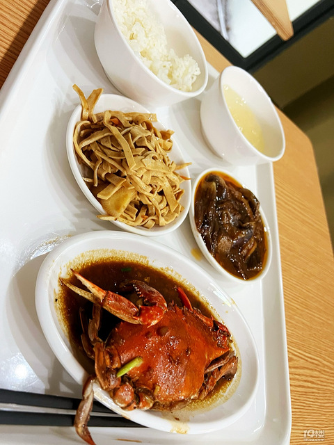 螃蟹+油焖茄子+千张+银耳汤,计7块螃蟹是真的肥,茄子是真的油