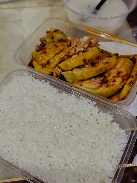 餐饮真的很卷!!!!就是赭溪老街的喜悦咖啡(西餐,这口水鸡到店不得卖你28.38,外卖+一份米饭,+皮蛋瘦肉粥或木耳红枣汤,拼饭只要8块多,22℃的夜晚,粥基本冷了,米饭还温热,口水鸡味道不错,米饭品质也,粥里有皮蛋和瘦肉,性价比真的高!!!米饭满满一盒,明天炒饭也够!