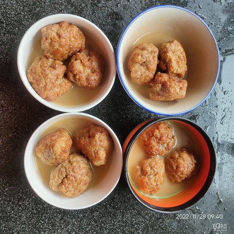 买了四五斤猪肉,就想着好久没做肉圆了,做一点吃吃吧,肉洗洗,切块,绞肉,加盐老酒葱姜水搅碎,然后团成圆,油煎,两面金黄,加水炖煮,出锅分装,我先吃两个,好香。
