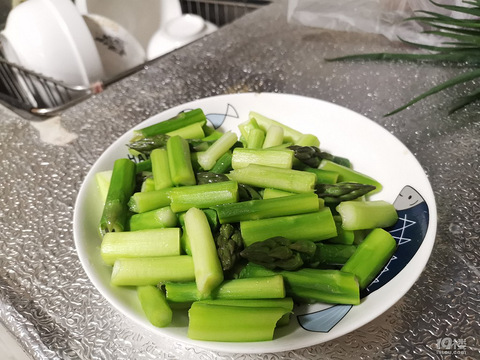 大蒜都没放,真的清炒芦笋如果太老,需要刮皮刀削皮沸水焯水捞起,然后少量油炒快出锅的时候放点盐