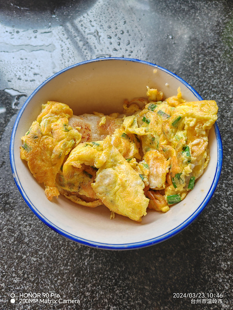 中午除了章鱼小丸子,还有鸡蛋麻糍,麻糍是别人送的,把豆粉洗干净,热锅热油放麻糍,煎两面金黄,放葱花蛋液,然后两面蛋液熟了就可以了