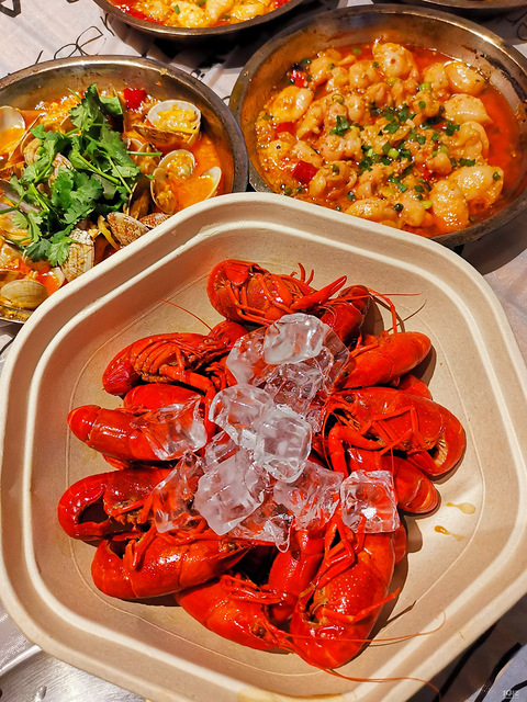 这个月第二次来了,有冰镇龙虾,不错好吃!!还有酱爆墨鱼嘴,台州特有,香辣香辣,下酒必备!油黄鸡,藤椒味的!牛骨汤水饺,也不错!再来一碗水果捞,幸福满满!