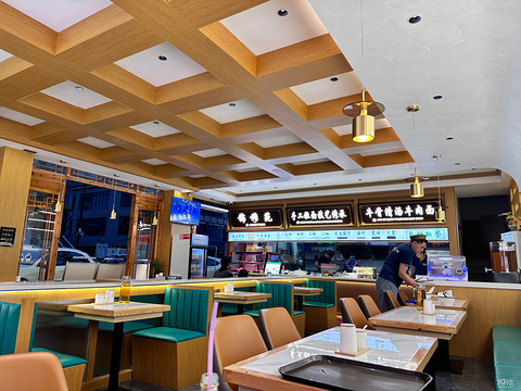 这家店在葭沚老街上,饭点路过被店里的烤羊肉串的味道吸引,干脆就进去尝尝。 点了份牛肉面,还有酸奶和羊肉串。面端上来的时候,有被这碗震惊到!这个是高脚盆吧哈哈哈哈,显得分量超级足。牛肉面还是很正宗的,牛肉块很大。从面条粗细不一的程度来看,应该是手工拉的,还蛮劲道。面上飘的辣椒油很香,但一点也不辣。整体味道还是不错的,可以再来光顾的程度。 酸奶挺好吃的,不甜,味偏酸。羊肉串点了两种,一种是竹签小串的,
