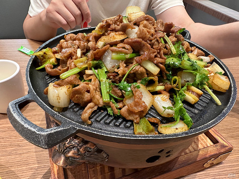 到了一周在外放风的日子,纠结吃啥好呢?就近去青悦城逛逛。四楼前不久刚开的一家西北菜,去尝尝味道吧!落座点菜很利索,选了个招牌羊肉,先生说想吃牛肉大酱骨,那也来一份。加一份我爱的酸奶,看到肉夹馍干脆不错也来一份。本来想点面食,毕竟大西北面食还是特色啊,无奈俩人都不湿太饿,就先点了那么些。点完看到别桌上的大凉皮,馋的狠,无奈眼睛大肚皮小,作罢作罢。上菜了,招牌的铁板羔羊肉,配合香菜和洋葱芹菜点缀,好香