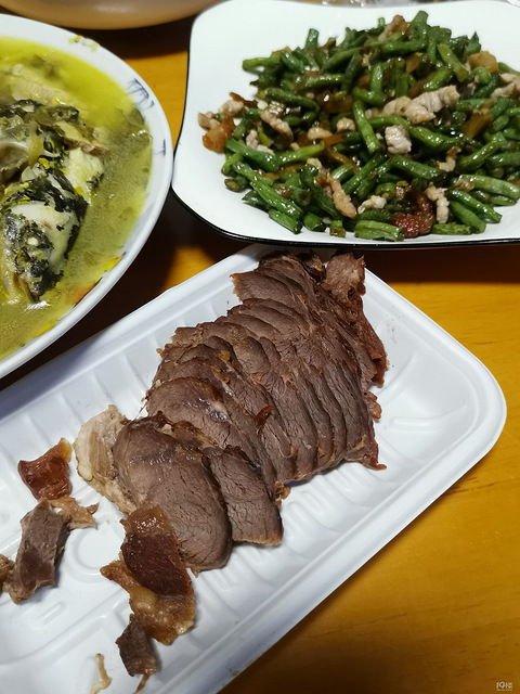 今年生牛肉还是比较便宜的熟食价格依旧在那里老板送了点鹌鹑蛋,花生米自己做了豆角炒肉,茄子汪刺鱼……够吃了!