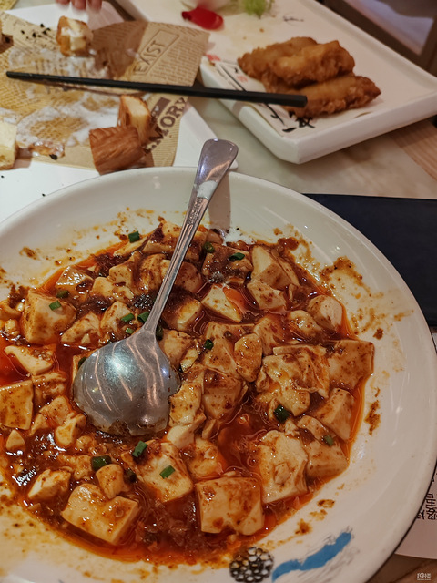 当时状态不错都在厨房吃饭一人一只麦饼小葱肉沫豆腐,香得啦!
