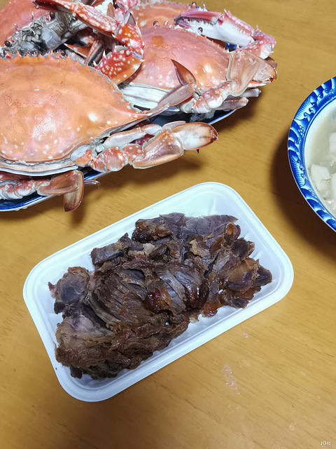 螃蟹已经50一斤了就是大点,壮的话,和之前35.38差不多买了点鸭,牛肉,烤麸炒了几个蔬菜,吃剩了一些