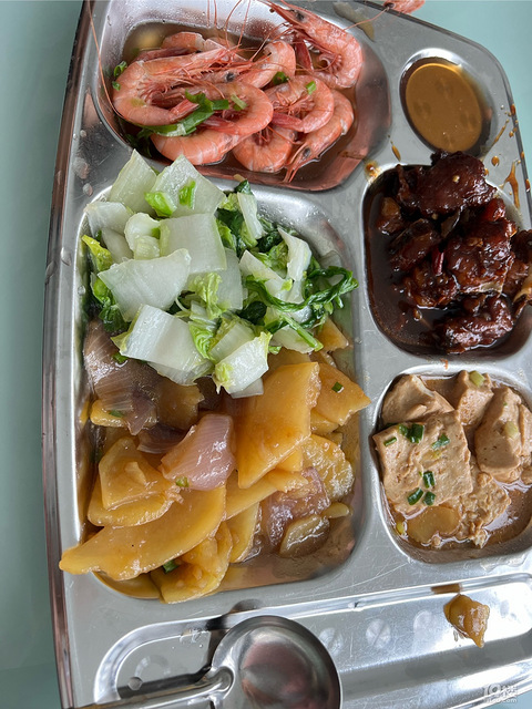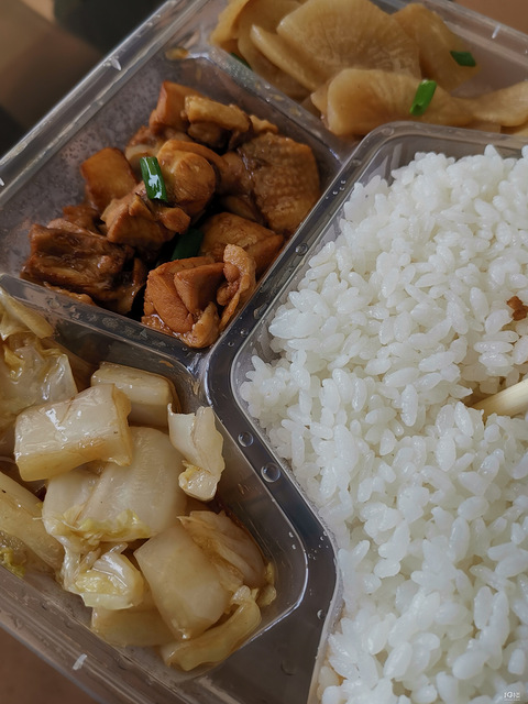 拼团随机一荤两素如果是鸡肉,红烧肉那还不错的,性价比很高应该不是预制菜把!