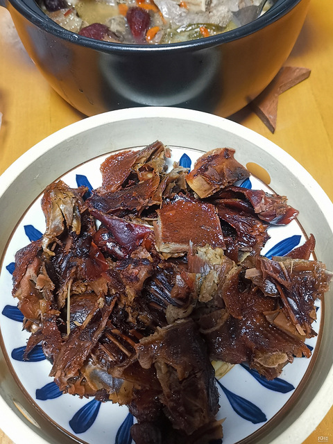 最近咳嗽厉害,很干燥老妈买了一个猪心,和猪肉莲子做了猪心汤咸中带甜,把烤鸭也蒸热了吃又炒了个青菜,打霜的青菜,有点甜