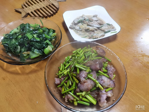 药补不如食补,除了菠菜和猪肝,其他什么?猪肝吃多了胆固醇高,菠菜一周两次就感觉多了!图片三菜一汤,菠菜还在煮!蒜苔炒香肠,香!