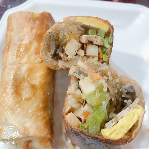煎饼筒,外面皮脆脆的,里面的菜也很丰富,竟然还有猪肝。桂圆鸡蛋汤,料也很足。