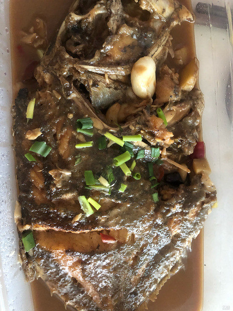 红烧太阳鱼,鱼大鱼肉也多,除了鱼长相不好看。肉片烧美人豆。韭菜炒蛋。洋葱炒黄鳝。四个菜106元,一般般吃吃吧。