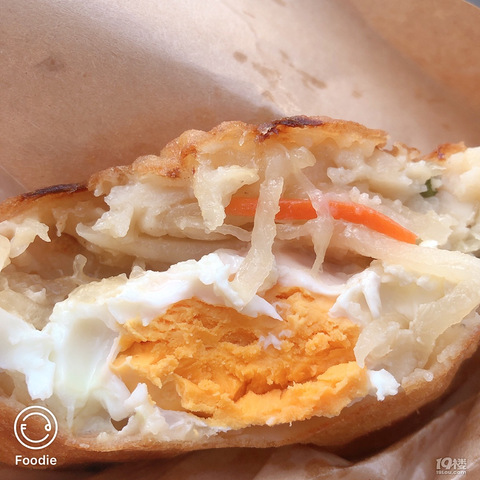 我们这边叫泡虾,温州这边叫灯盏糕,灯盏糕加肉丝加蛋8元一个,还可以叫鲍鱼加香肠等,里面还有萝卜丝,趁热吃@台州小帮帮06