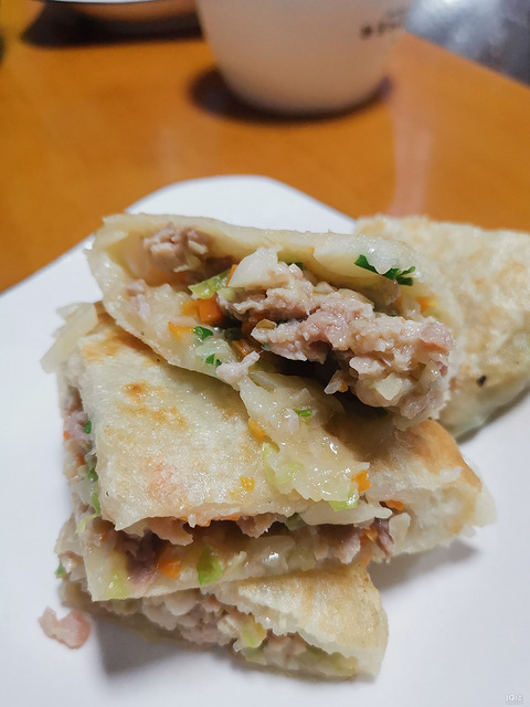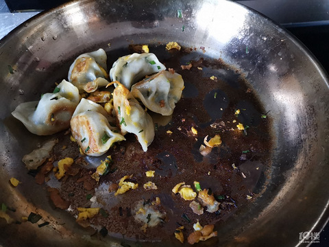 灵感来自泡虾,做法类似水煎包其实就是意大利饼虾仁,肉沫,胡萝卜包心菜水煎五分钟,开吃!