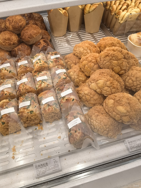 青悦城新开的店,服务员粉色的套装工作服我觉得好美好嫩,开业人比较多,买了肉松卷还有蛋挞,芝士蛋糕也不错吧