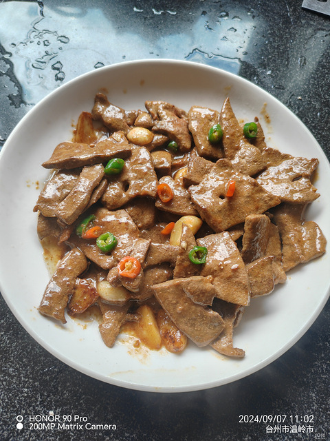 上午买了四块五毛钱的猪肝,中午炒着吃了,感觉蛮多啊!热锅热油放入姜片炒香,再放大蒜,然后放入用淀粉和调料抓腌过的猪肝,炒变色加耗油生抽,一圈老酒,放青红线椒圈,差不多就出锅了