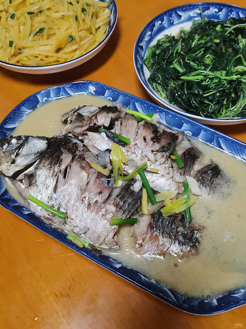 夏天据说肝脏不好就一直没吃今天炒了三两鲫鱼16一斤,来两只其他就土豆丝和苋菜!!!