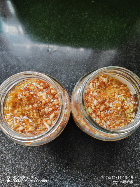 大蒜切蒂头,剥衣,一开始用刀剁,有点累,用绞肉机,太方便了,一半大蒜末洗洗,锅里倒油,四成热放入洗过的大蒜末,不停的翻炒至大蒜末金黄色,关火,倒入另一半生的大蒜末,加点盐,生抽,耗油,白糖拌匀,装罐就可以了