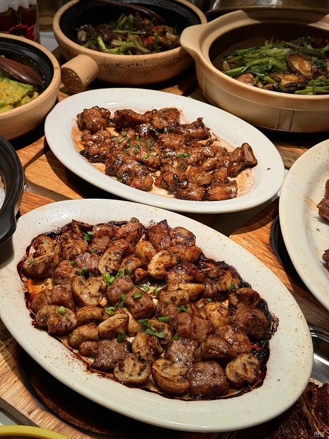量很大的干蒸菜还有各种砂锅不加水,香得很非常开胃!!!下饭下酒都不错!