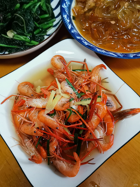 夏天总体来说虾还是便宜的天气冷的时候,这种大小得80-100一斤现在60,买三两水煮一下就行自己种的苋菜,放点大蒜炒一盘再煮个豆面汤!!!