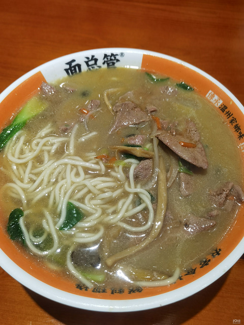 味道还是可以的,开业的时候团了青菜肉沫面,没去过期了,今天试试猪肝面,汤还是非常有香头,也很浓郁,面很新鲜!猪肝不老不嫩刚好!就是欣赏不来,为啥放了金针,其他配菜是青菜,木耳,量不小!