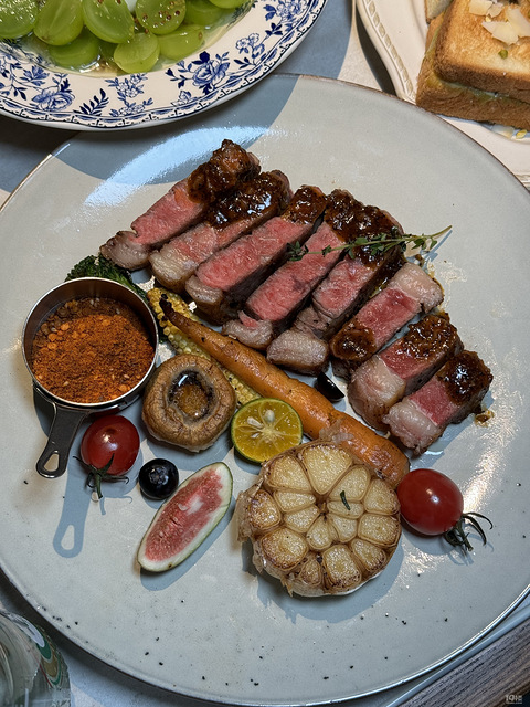 临海的融合餐厅,现在的菜真的是越来越好看情不自禁要拍照牛排也不错,好看好吃沙拉,吐司都不错!