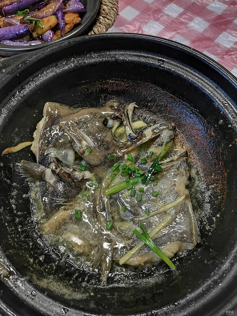 笔管鱼,新鲜美味,整只咬。老鸭豆面汤,好喝,豆面真好吃。红绿头虾炒芹菜 钓鱼去