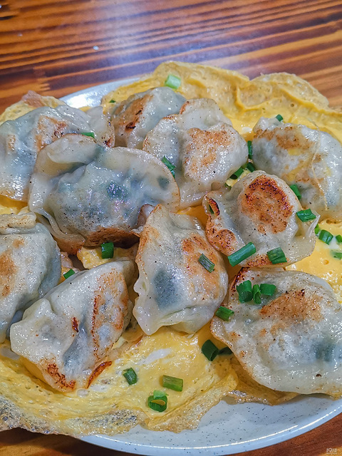 这家饺子店开了有些年头了,挺不错的。饺子皮是手擀的,吃得出劲道。煮饺子用的是高压锅,煮出来的饺子皮特别Q弹,肉馅也紧实。今天试了煎饺,17块钱10个,性价比还行。煎的时候打了鸡蛋进去,出锅时底下有一层金黄的蛋皮,闻着特别香,吃起来外脆里嫩,是家常实在的好味道。