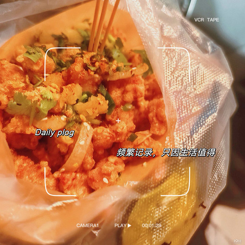 这家店炸东西,火候掌握得好。鱿鱼炸完还是嫩弹的,里脊肉咬开有汁,金针菇酥酥的…….没吃糖醋,调味就是简单的椒盐孜然,咸淡正好。吃起来不腻,是那种家里做不出的、踏实的香脆。