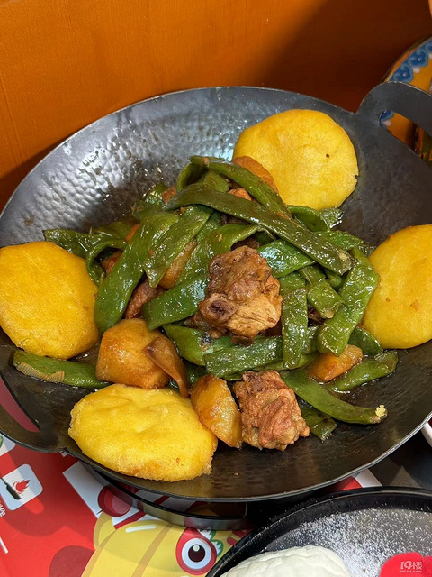 排骨豆角,炖得很到位很东北,拔丝地瓜很精致呀这个不是蛋清羊尾,是雪衣豆沙